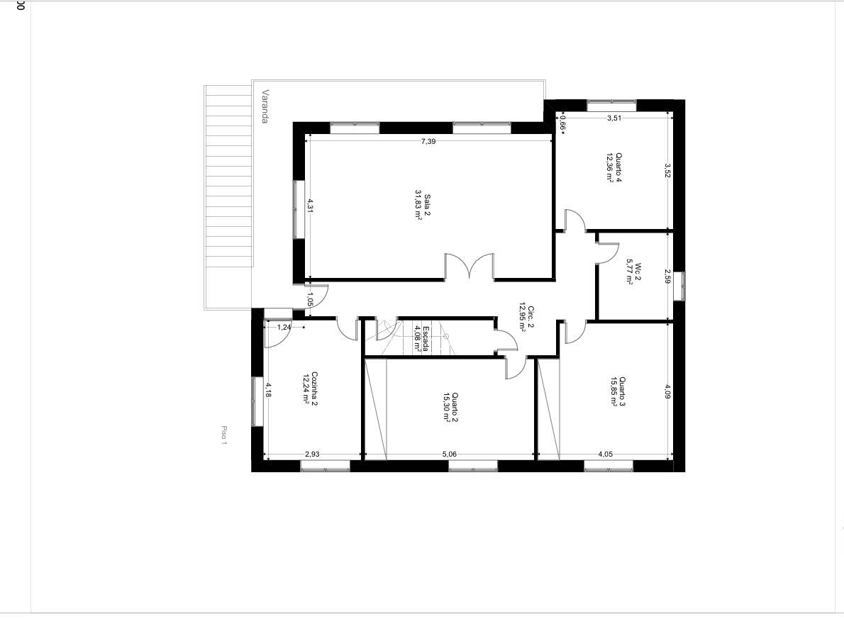 Áreas amplas, conta com sala, cozinha, hall de entrada, quarto e casa de banho ao nível do rés-do-chão, e com cozinha (não equipada), sala de estar e de jantar, 4 quartos e casa de banho ao nível do 1º piso.