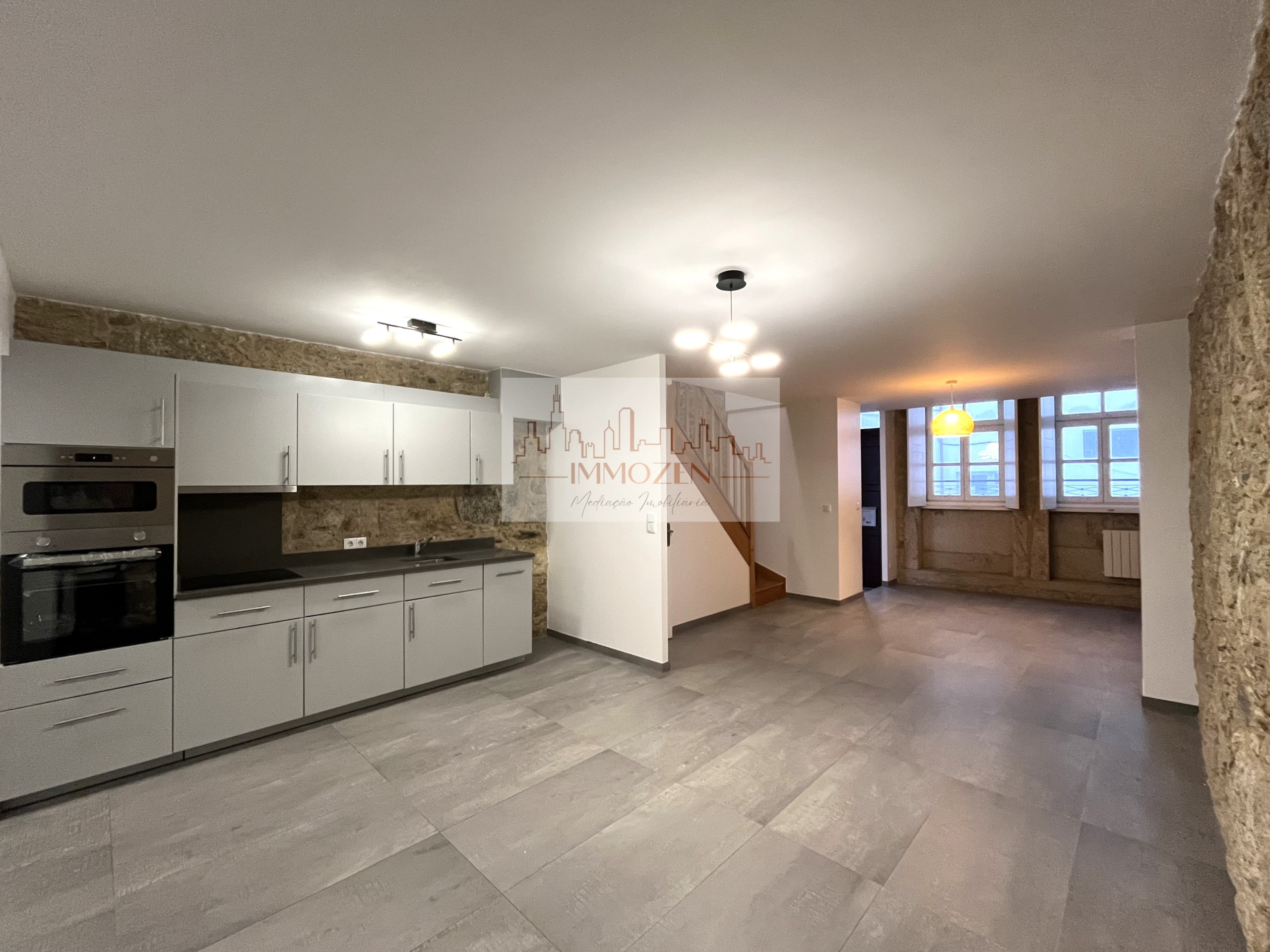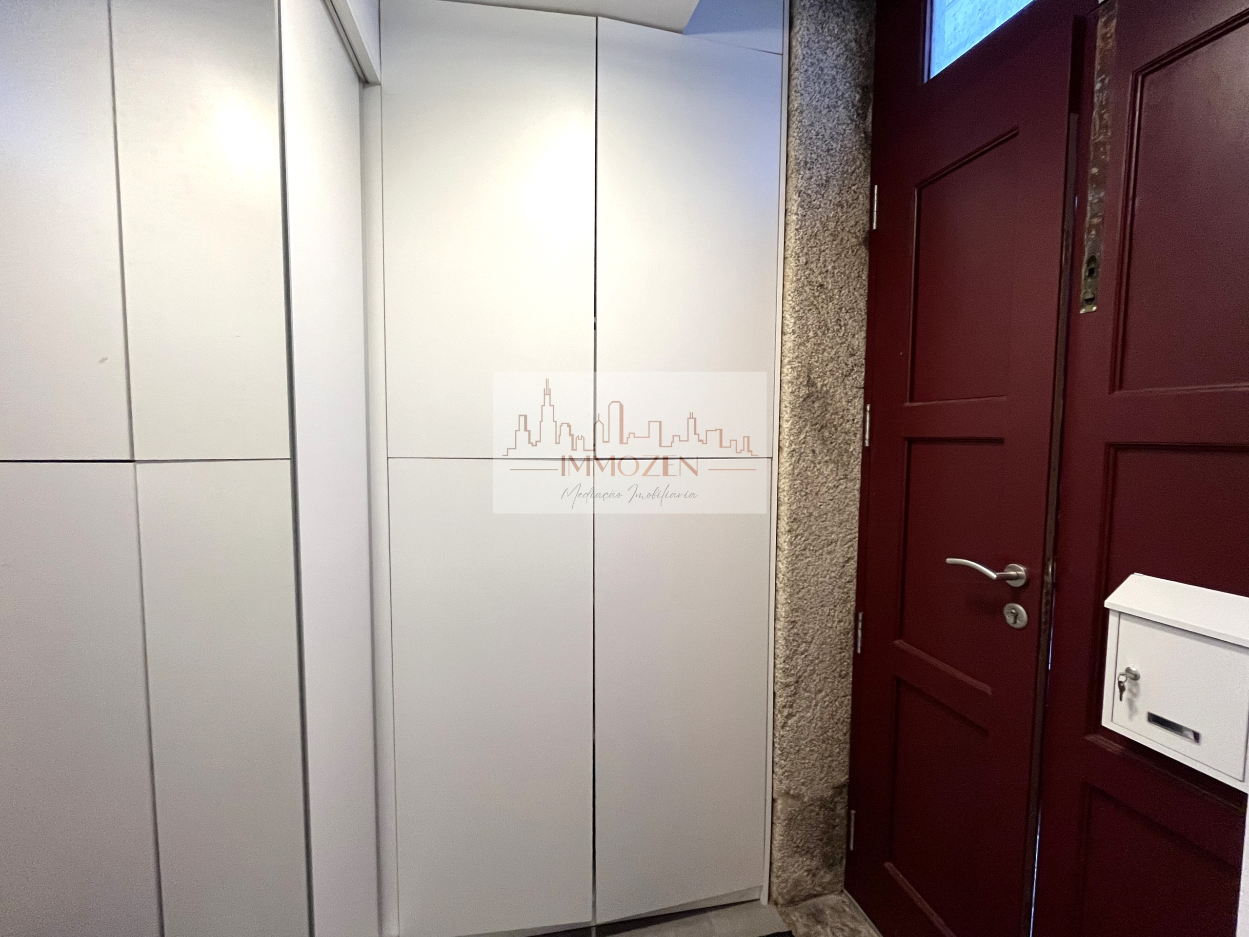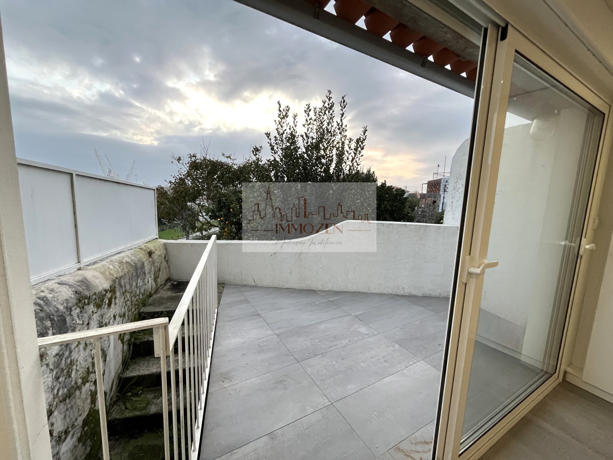 Composta por 2 quartos, 1 deles com varanda e vistas magníficas para a cidade, e 1 casa de banho completa ao nível do 1º piso, e por sala aberta sobre a cozinha equipada com placa, forno, micro-ondas, exaustor, máquina de lavar louça e uma casa de banho de serviço ao nível do rés-do-chão, com saída para um agradável terraço onde poderá usufruir de um espaço exterior, o mesmo tem acesso a um espaço para arrumos ao nível dos fundos da moradia.