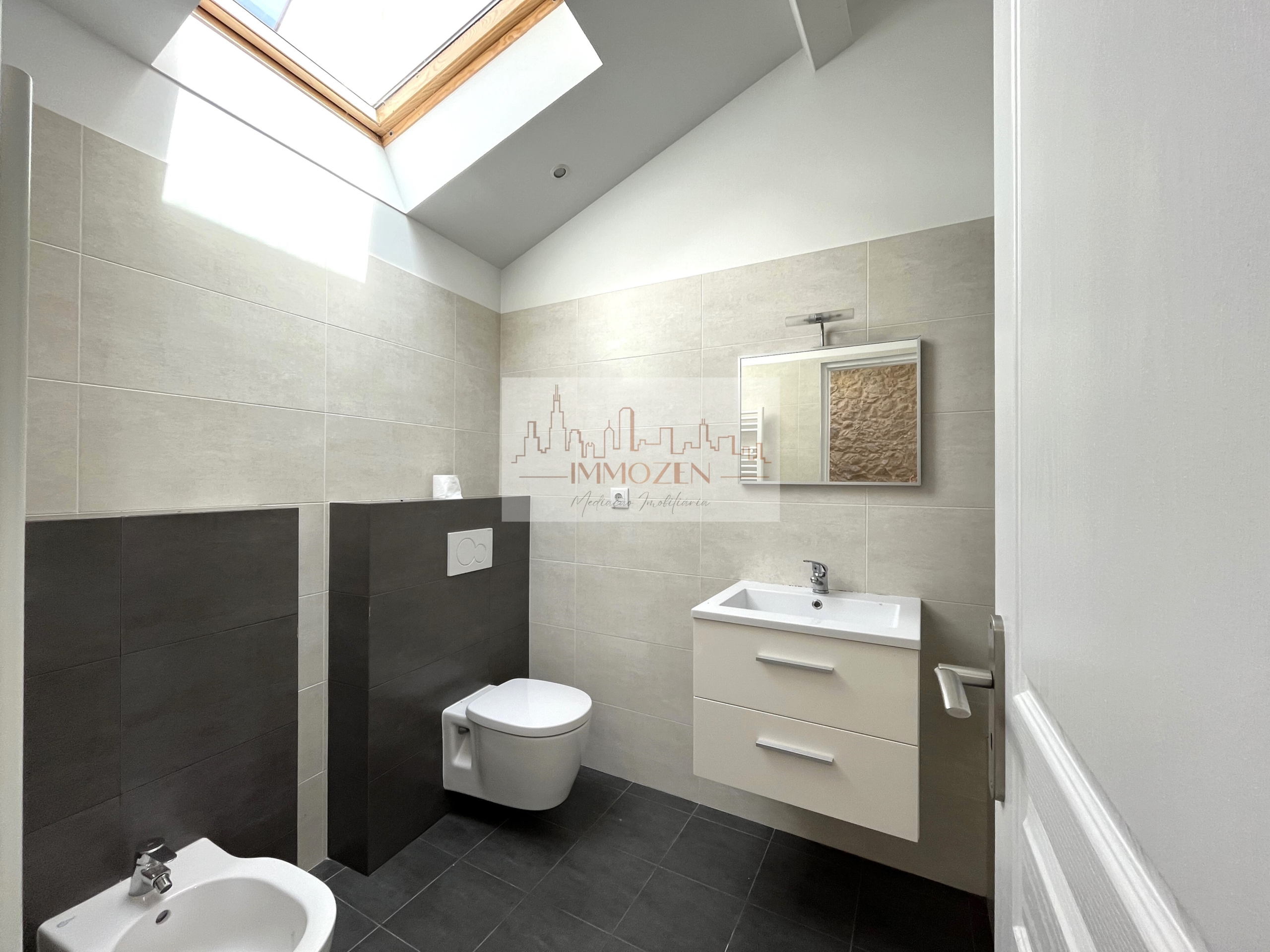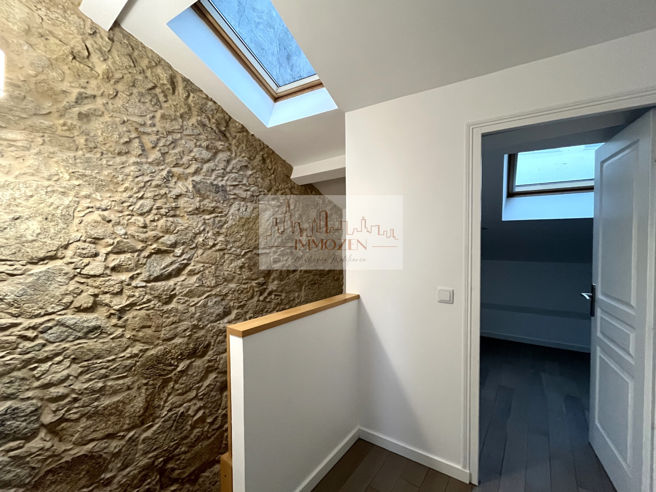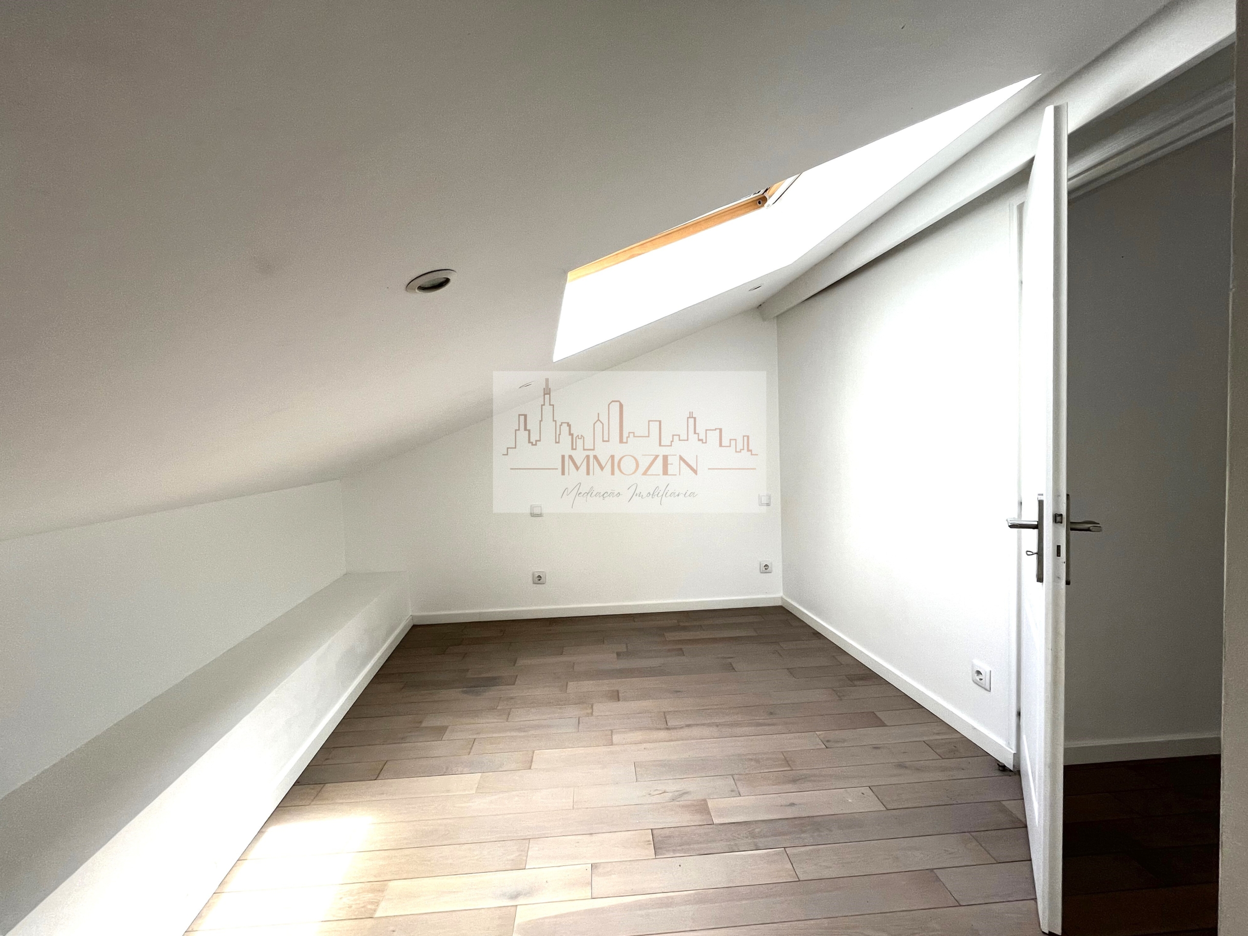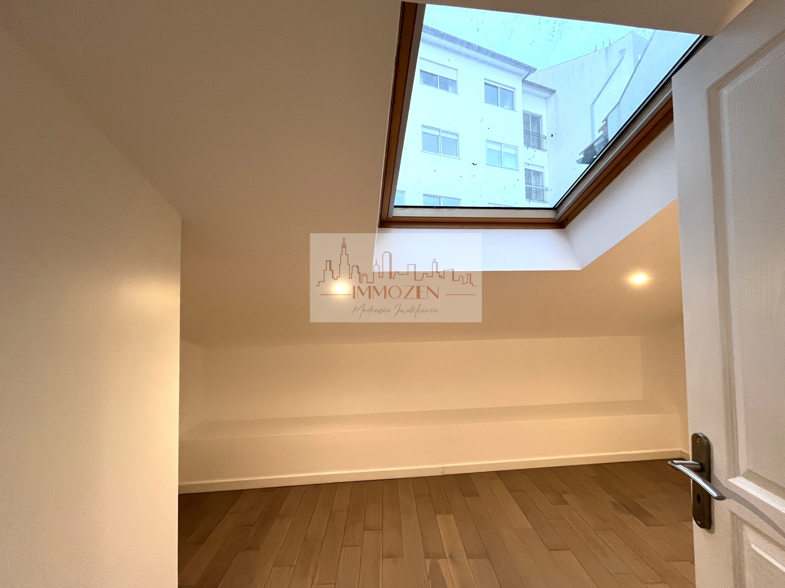 Composta por 2 quartos, 1 deles com varanda e vistas magníficas para a cidade, e 1 casa de banho completa ao nível do 1º piso, e por sala aberta sobre a cozinha equipada com placa, forno, micro-ondas, exaustor, máquina de lavar louça e uma casa de banho de serviço ao nível do rés-do-chão, com saída para um agradável terraço onde poderá usufruir de um espaço exterior, o mesmo tem acesso a um espaço para arrumos ao nível dos fundos da moradia.