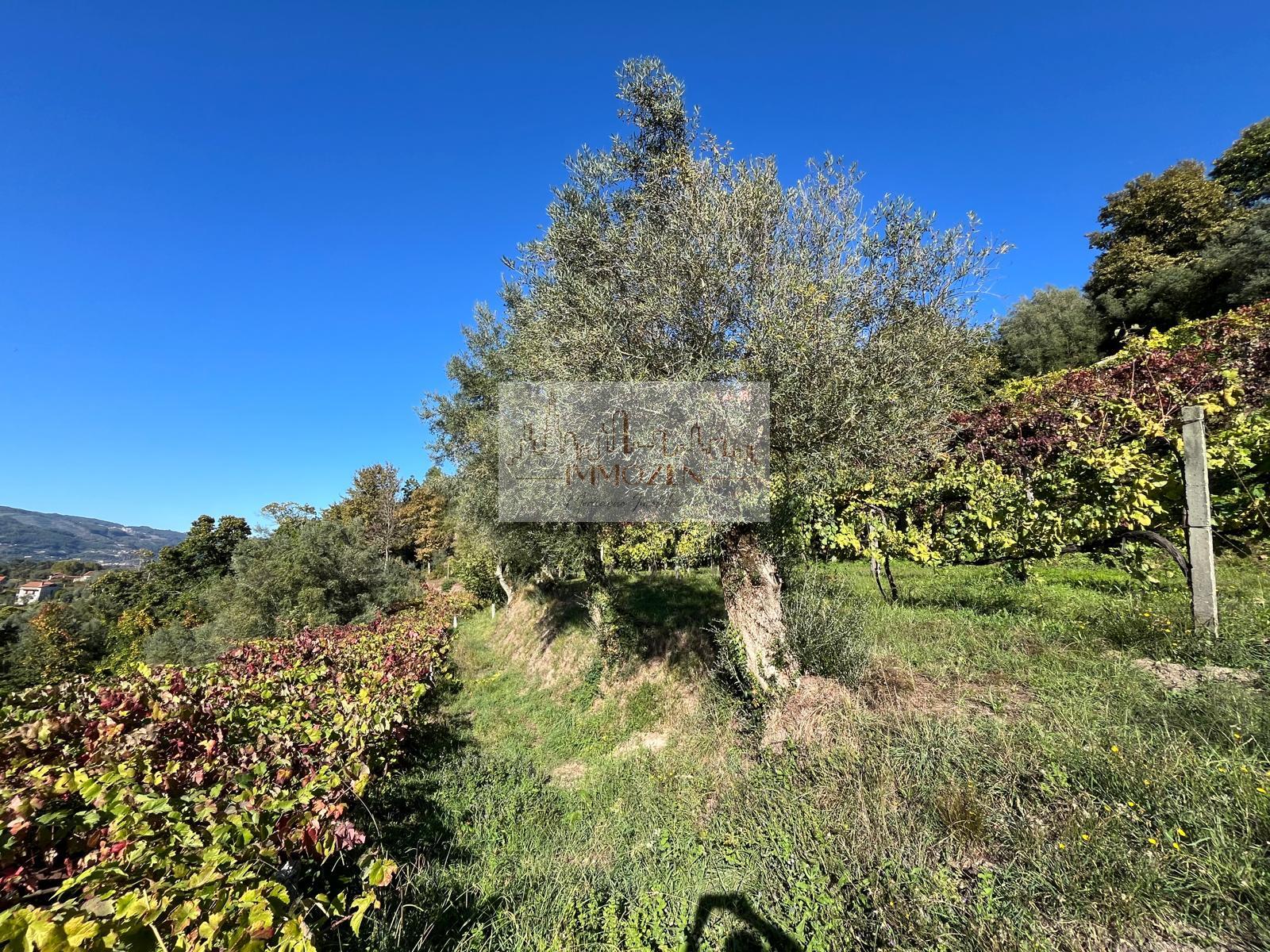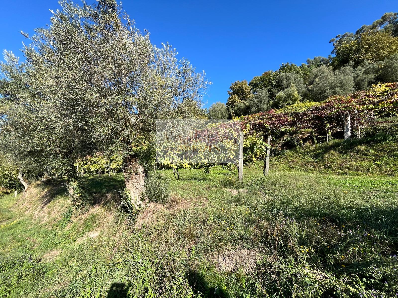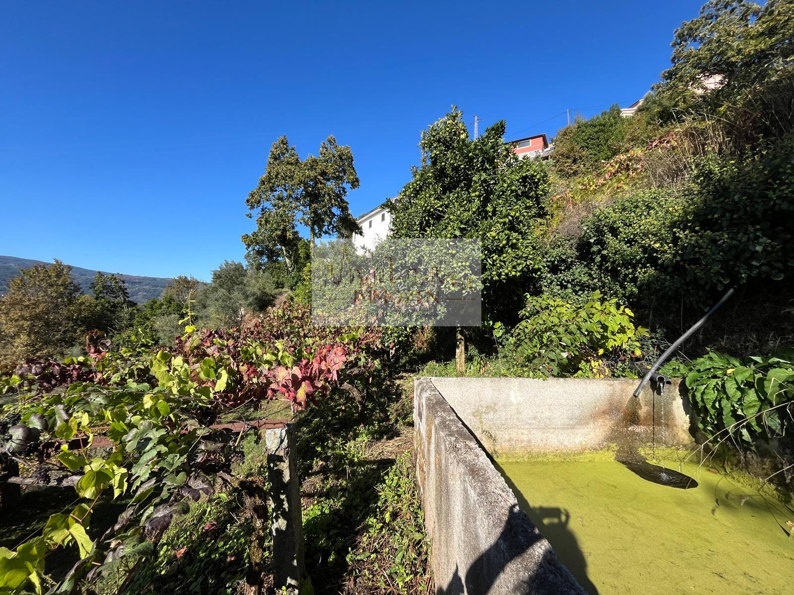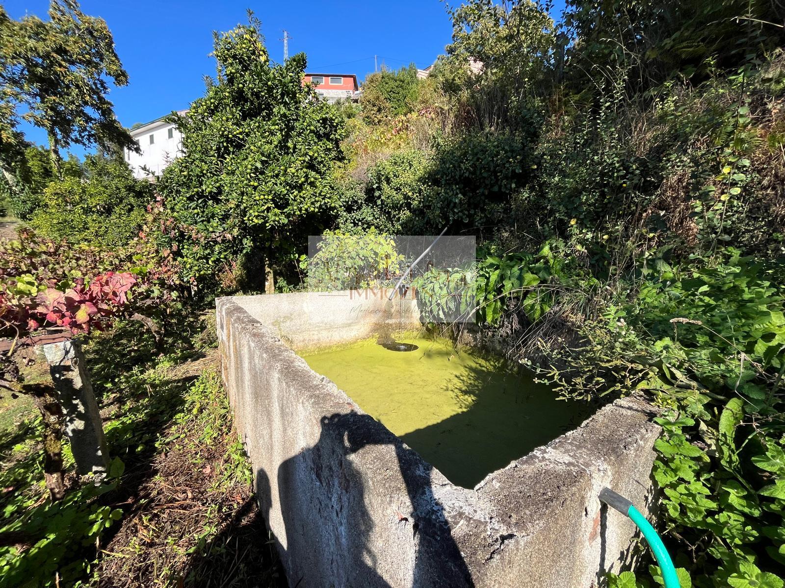 O terreno de 2.505m2 conta com alguma vinha, árvores de fruto, oliveiras, uma poça de consortes e um tanque onde cai a água que provém de outro artigo, um pouco mais acima, no monte com 1.364m2.