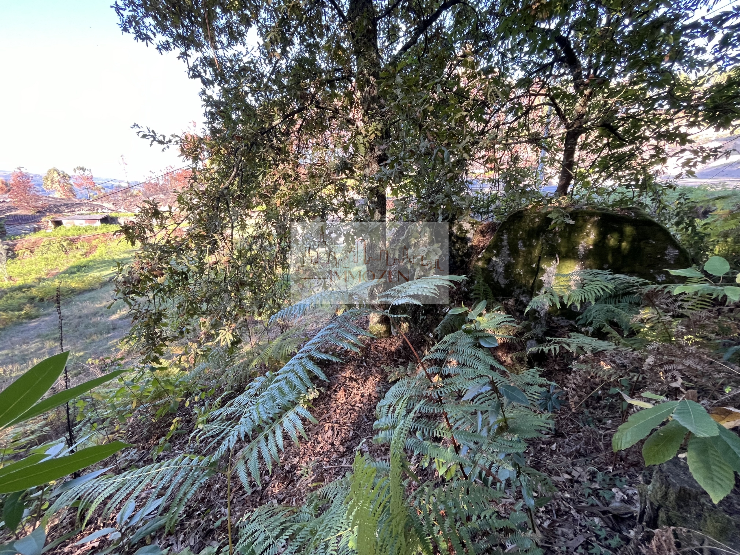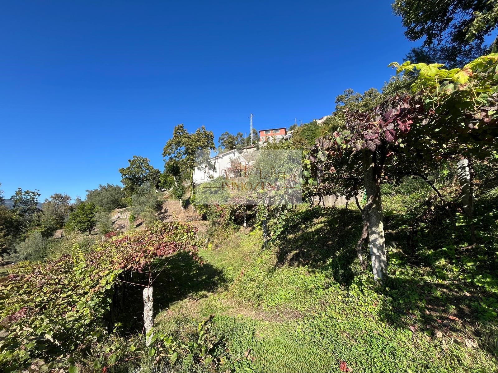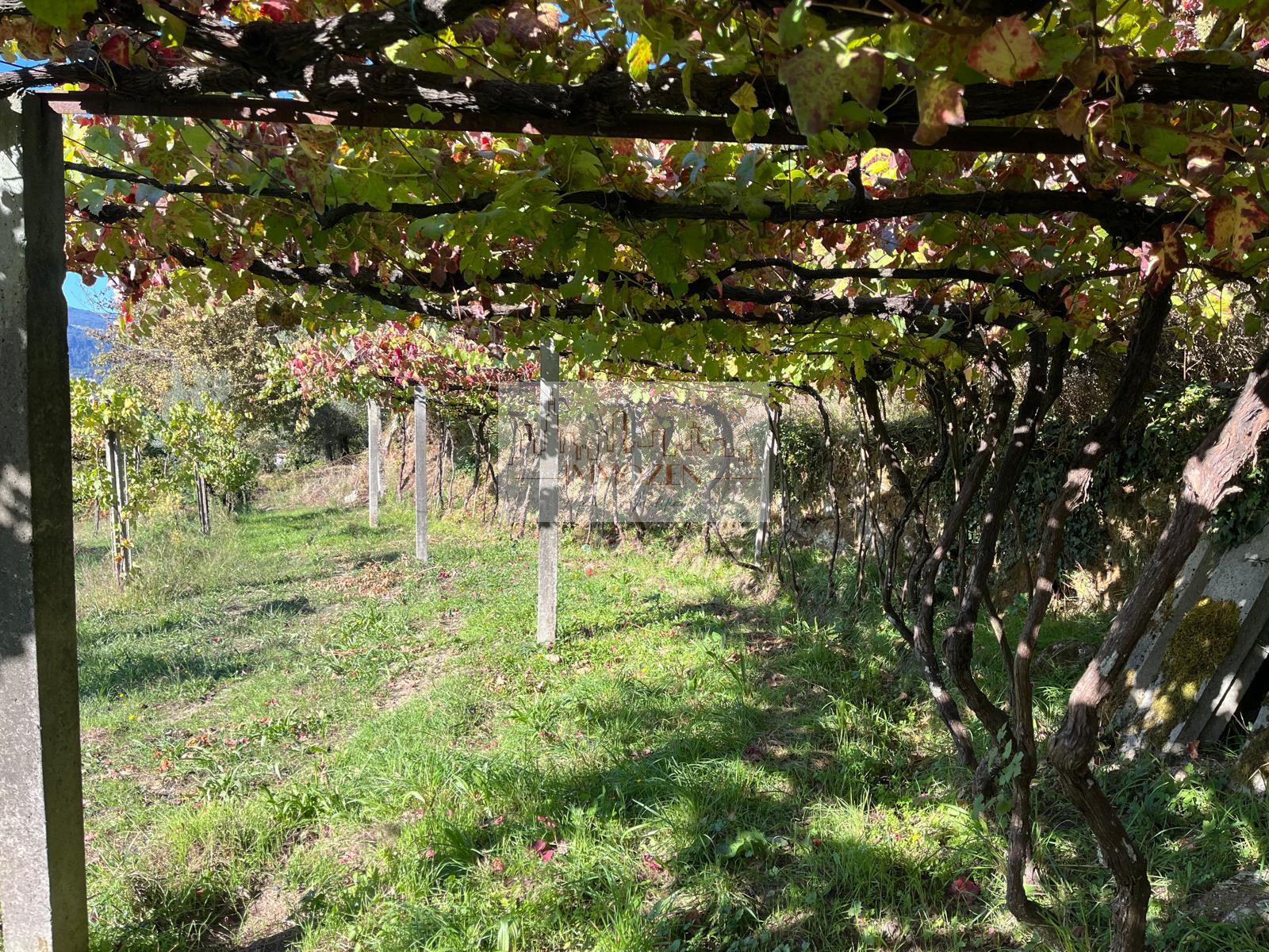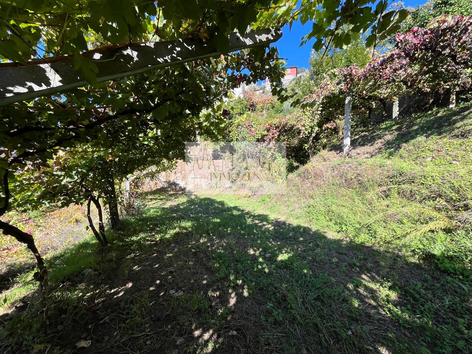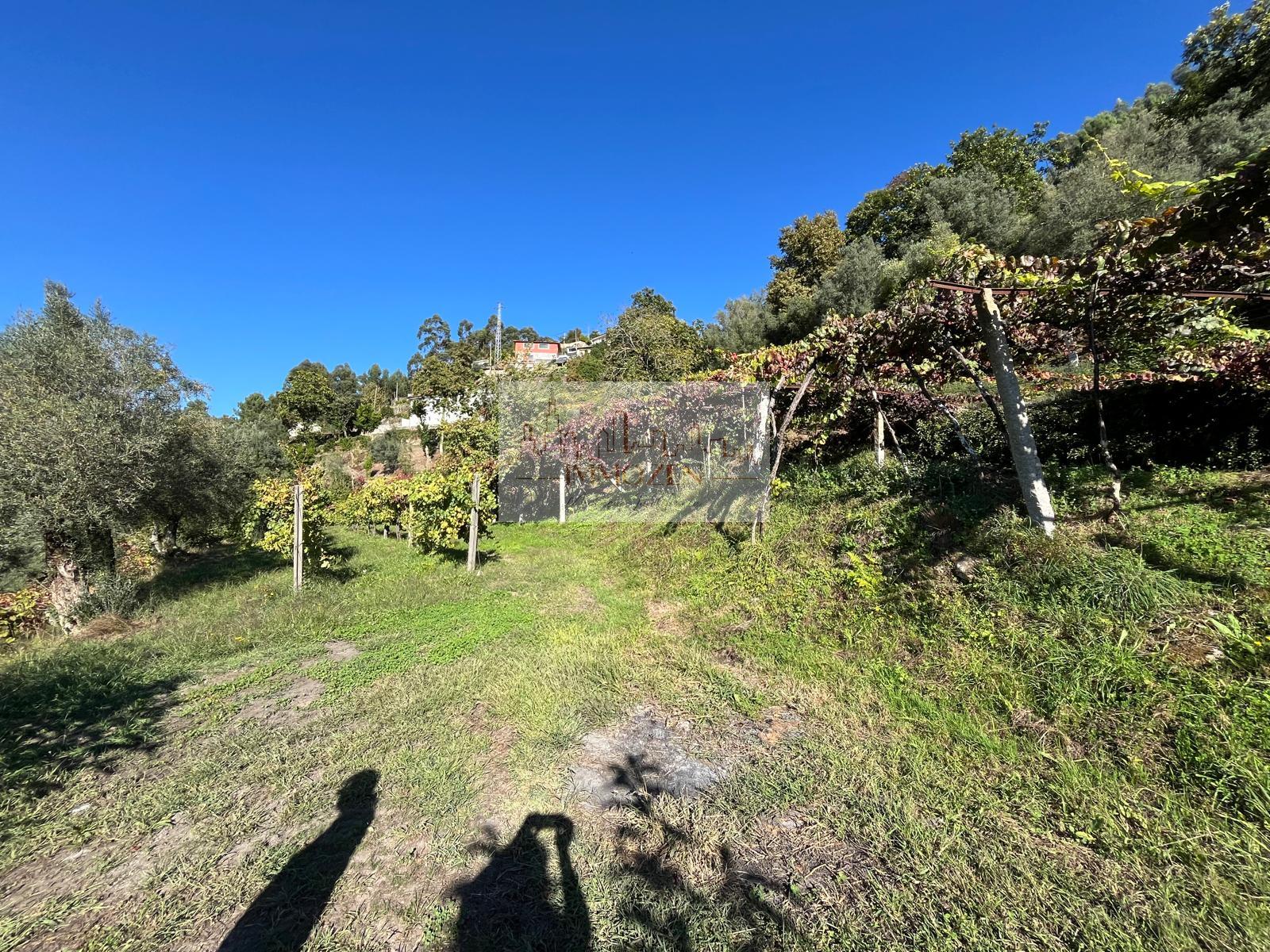 O terreno de 2.505m2 conta com alguma vinha, árvores de fruto, oliveiras, uma poça de consortes e um tanque onde cai a água que provém de outro artigo, um pouco mais acima, no monte com 1.364m2.